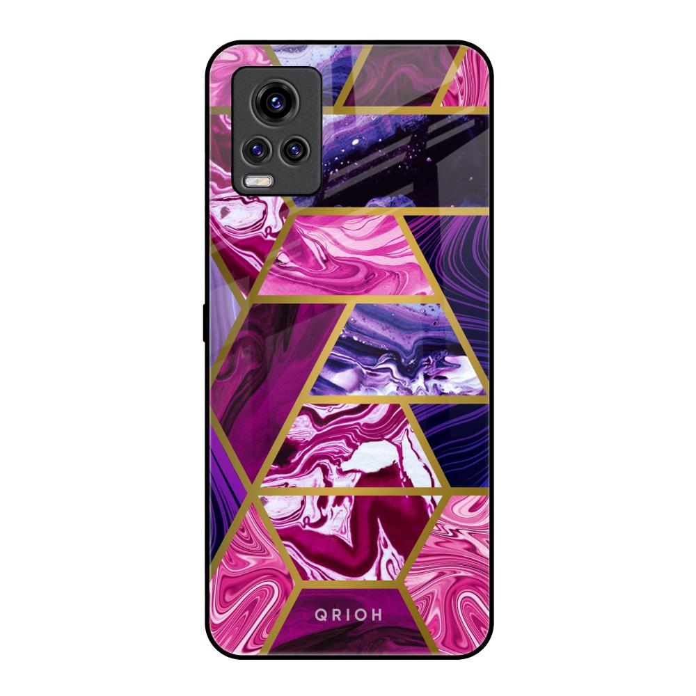 Electroplated Geometric Marble Glass Case for Vivo V20 Pro