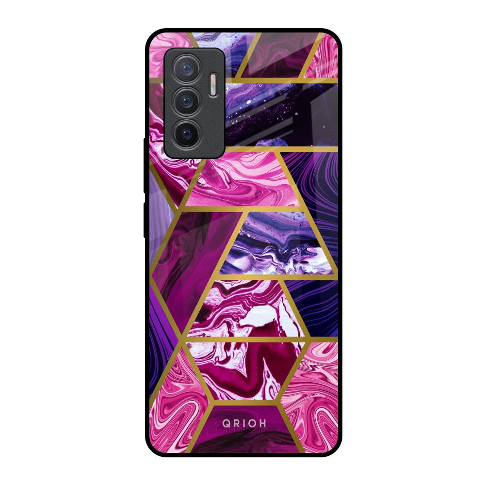 Electroplated Geometric Marble Glass Case for Vivo V23e 5G