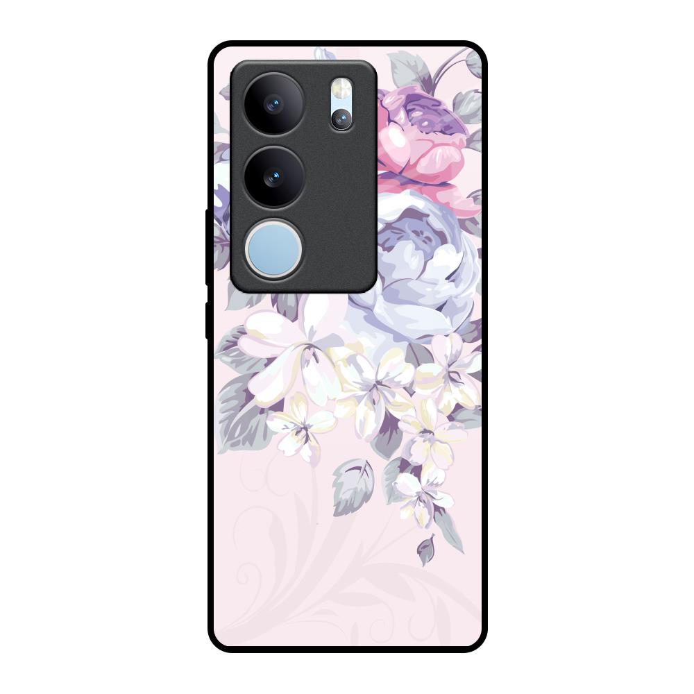 Elegant Floral Glass Case for Vivo V29 5G