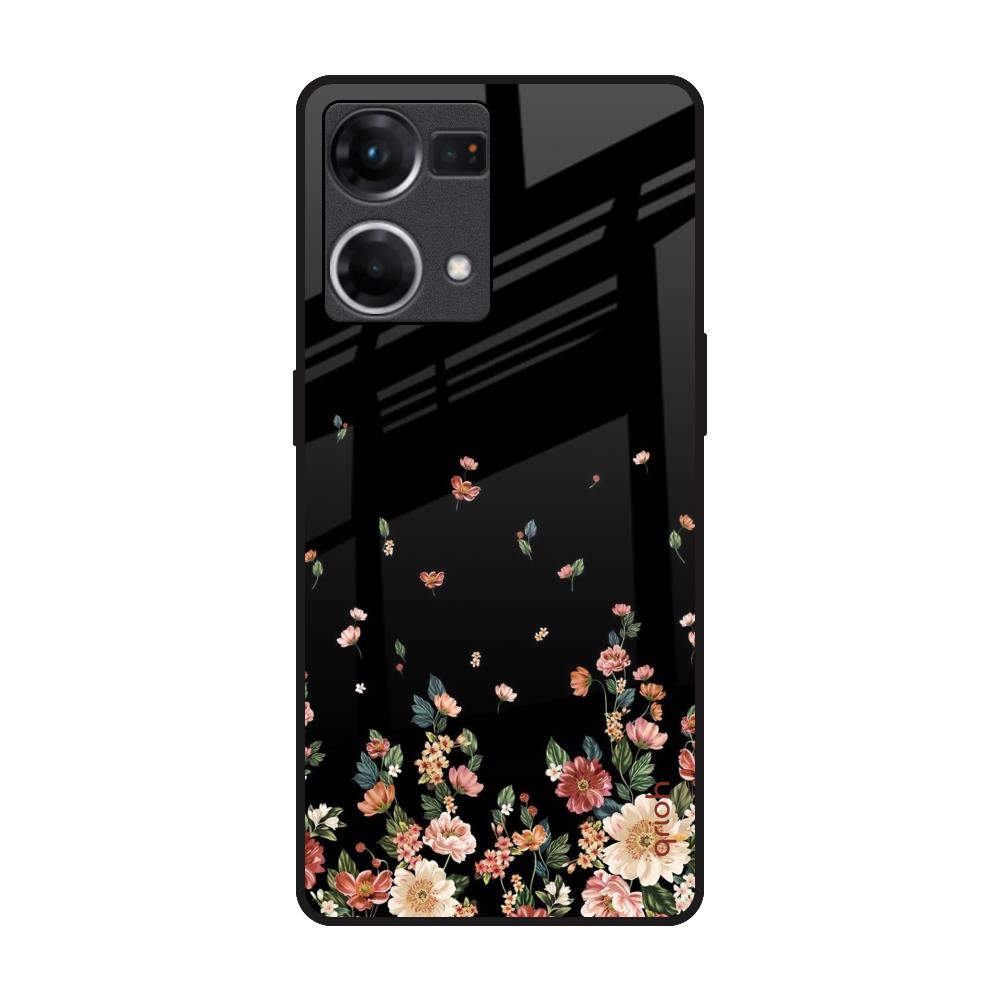 Floating Floral Print Glass Case for Oppo F21s Pro