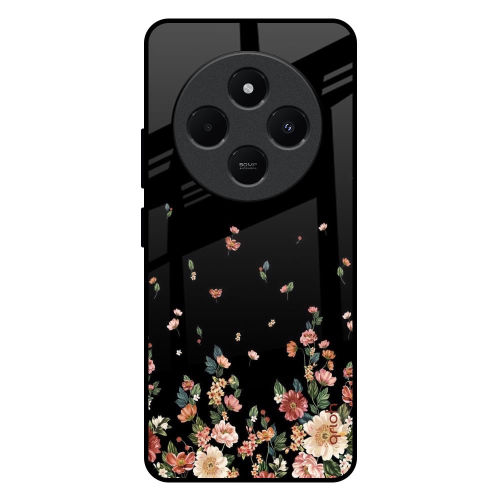 Floating Floral Print Glass Case for Redmi 14C 5G