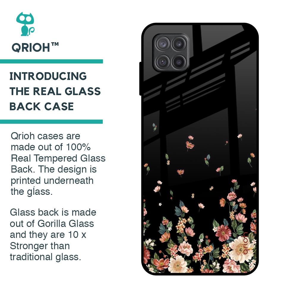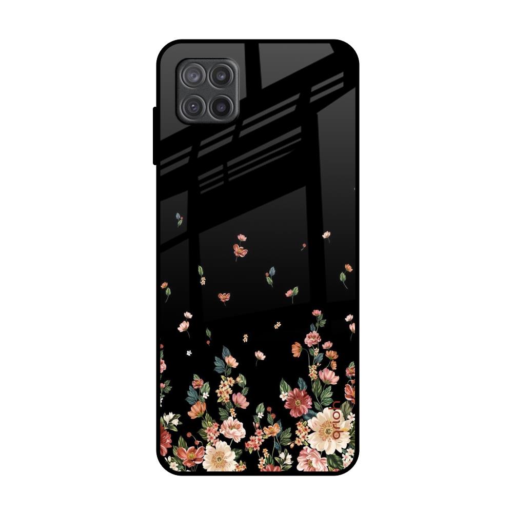 Floating Floral Print Glass Case for Samsung Galaxy A12