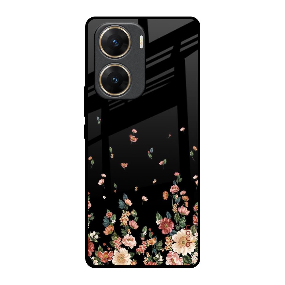 Floating Floral Print Glass Case for Vivo V29e 5G