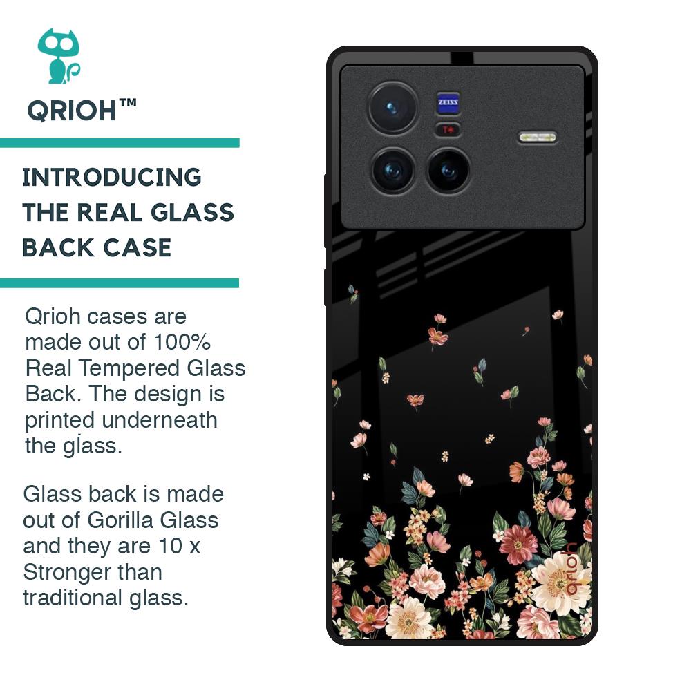 Floating Floral Print Glass Case for Vivo X80 5G