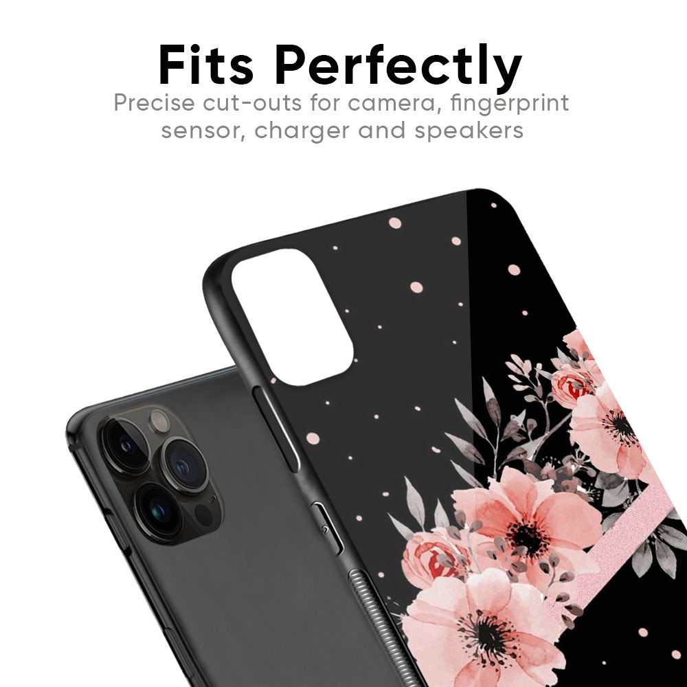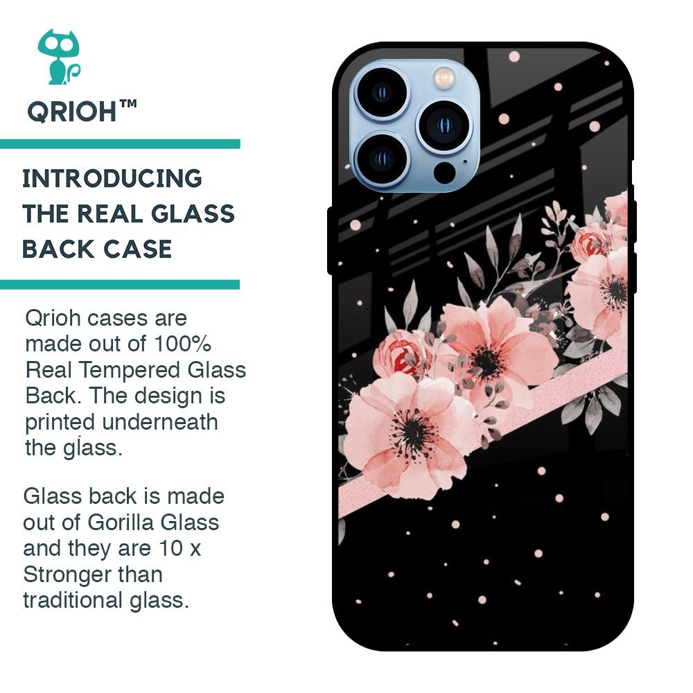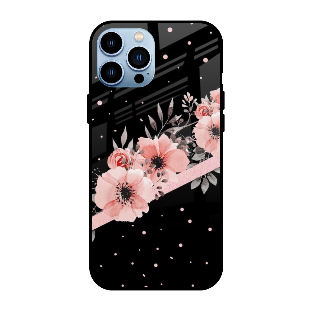 Floral Black Band Glass Case For iPhone 13 Pro Max