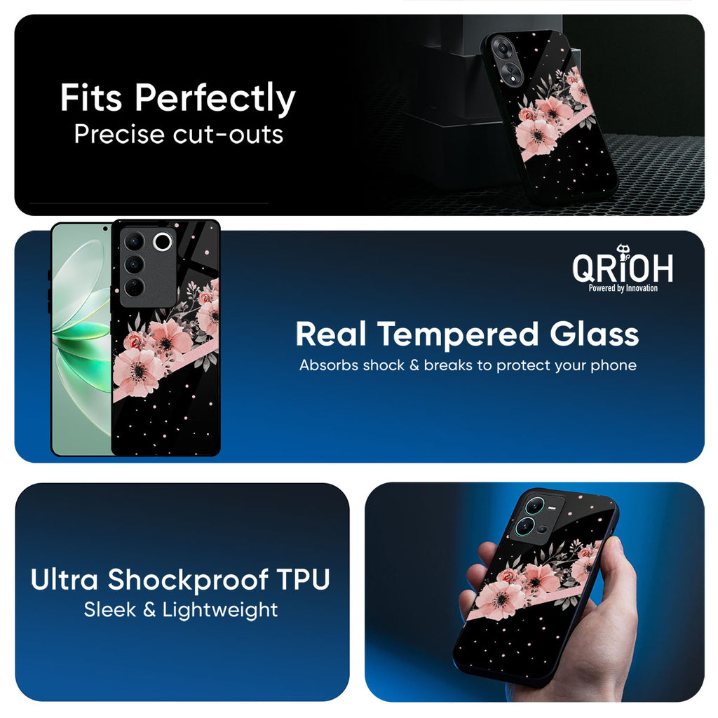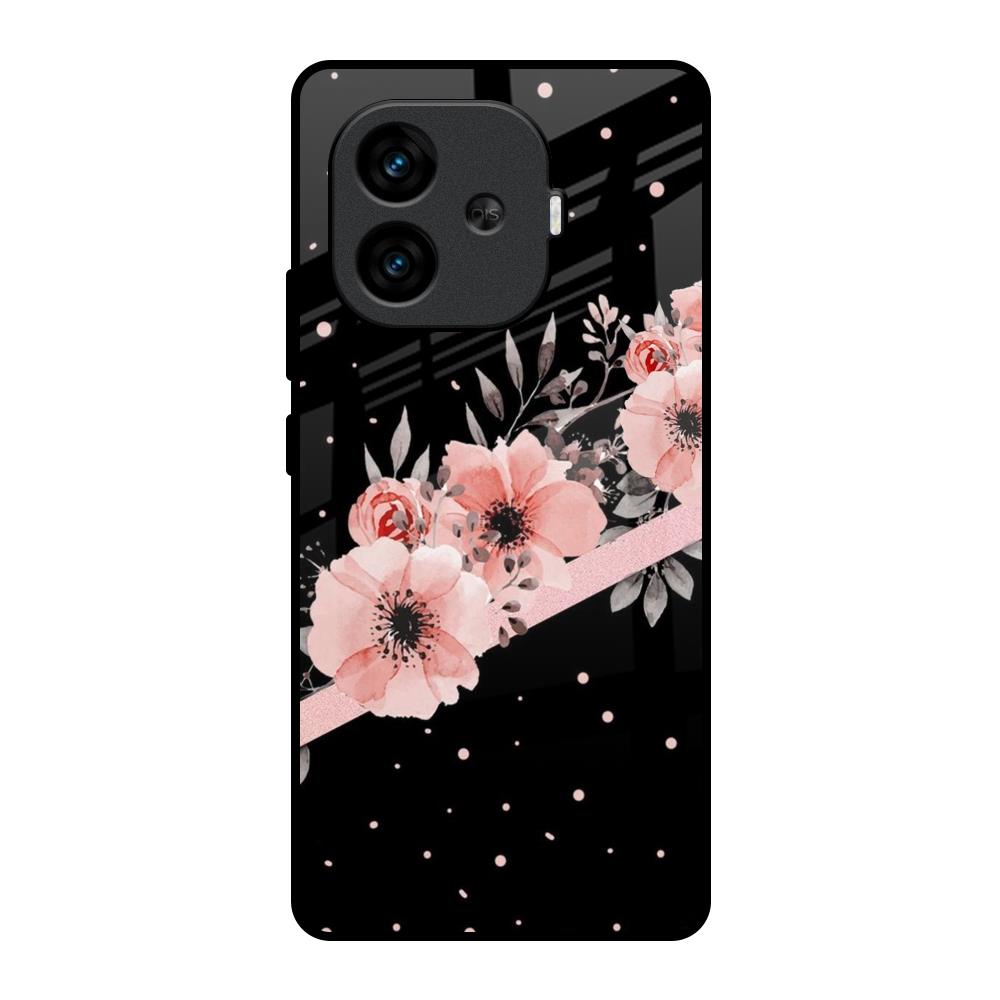 Floral Black Band Glass Case For iQOO Neo 10R 5G