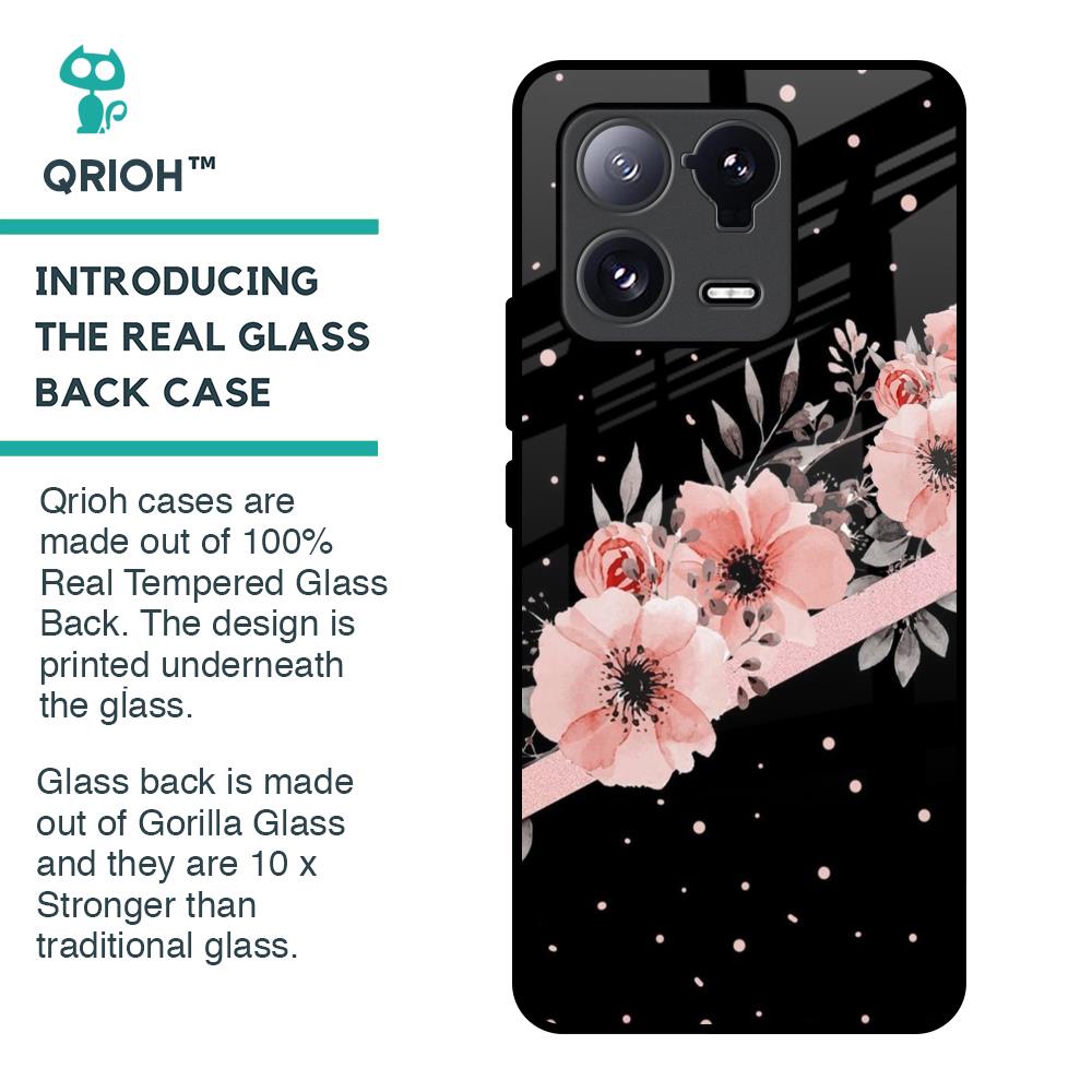 Floral Black Band Glass Case For Mi 13 Pro