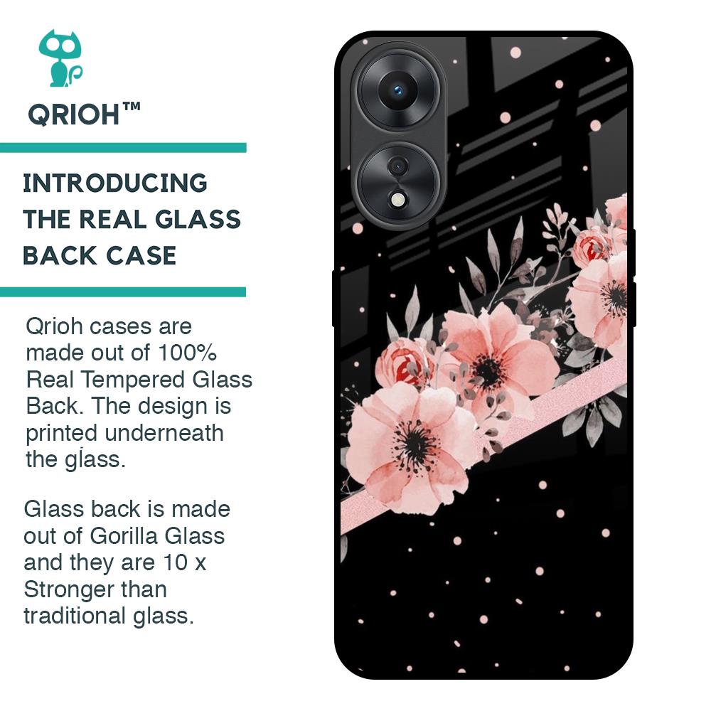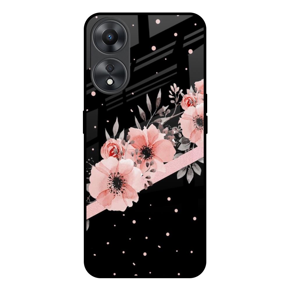 Floral Black Band Glass Case For Oppo A58 5G