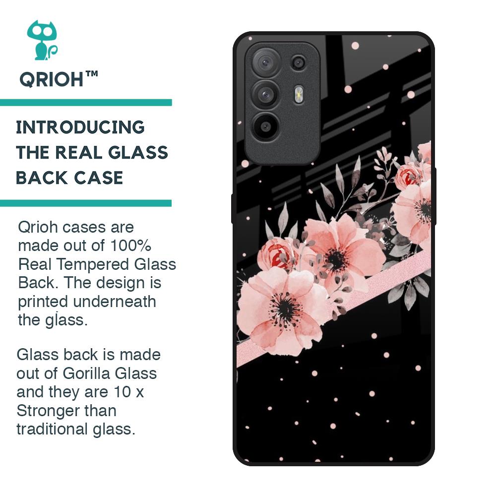 Floral Black Band Glass Case For Oppo F19 Pro Plus