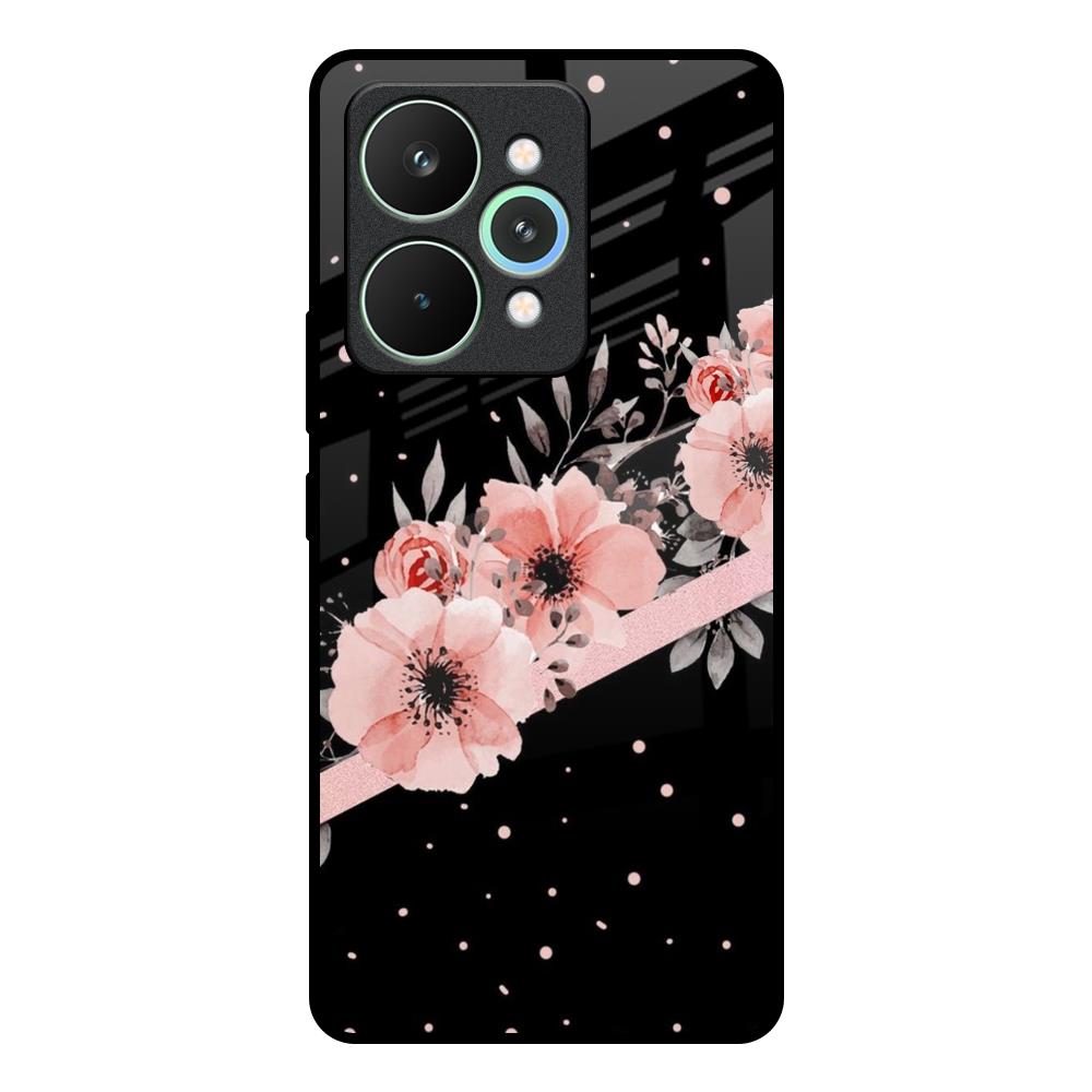 Floral Black Band Glass Case For Realme 15 Pro 5G