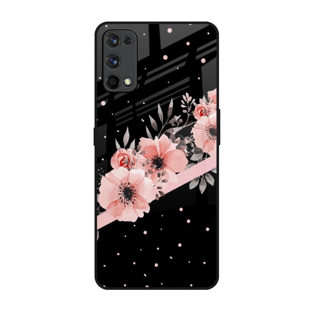 Floral Black Band Glass Case For Realme 7 Pro
