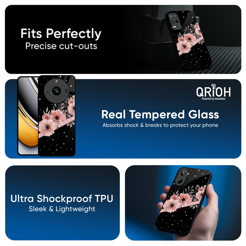 Floral Black Band Glass Case For Realme GT7 Pro