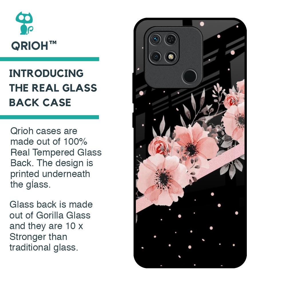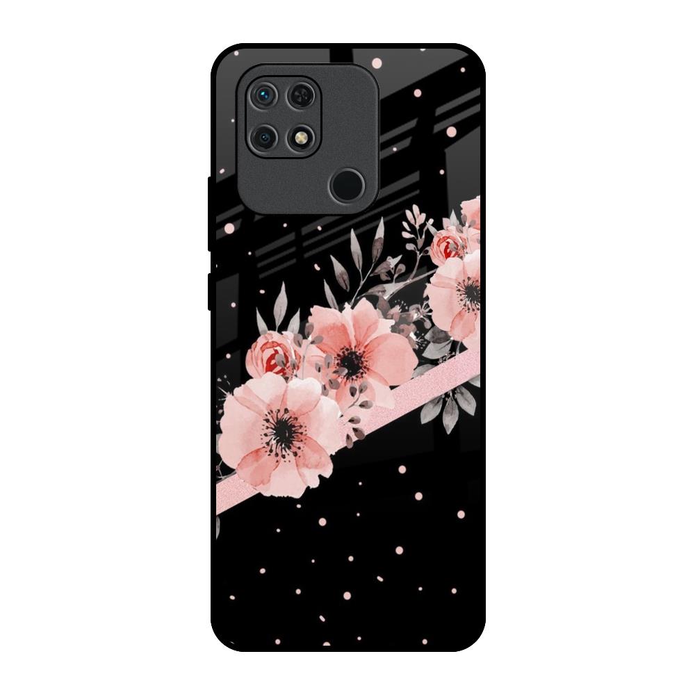 Floral Black Band Glass Case For Redmi 10