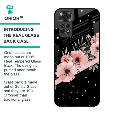 Floral Black Band Glass Case For Redmi Note 11S