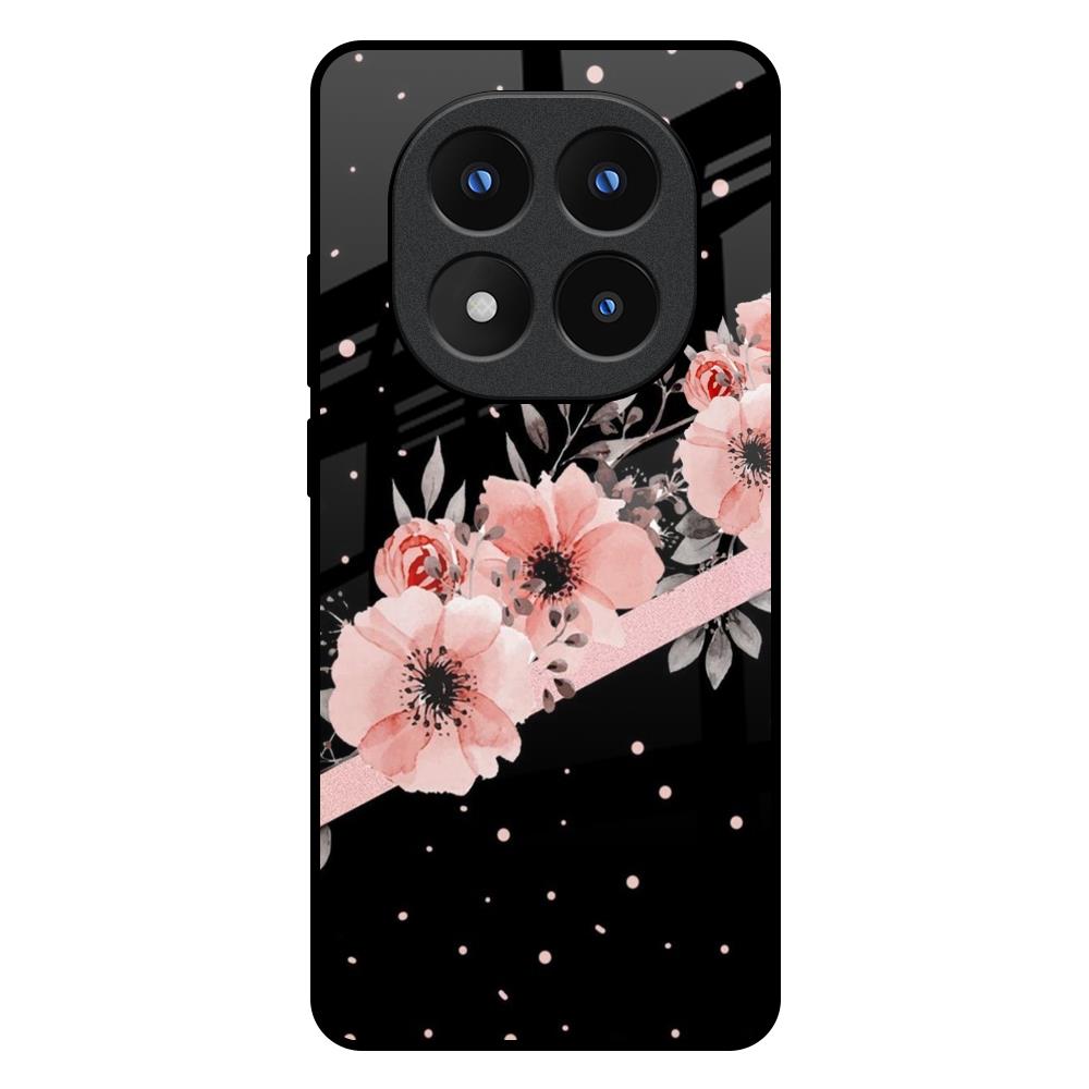 Floral Black Band Glass Case For Redmi Note 14 Pro Plus 5G