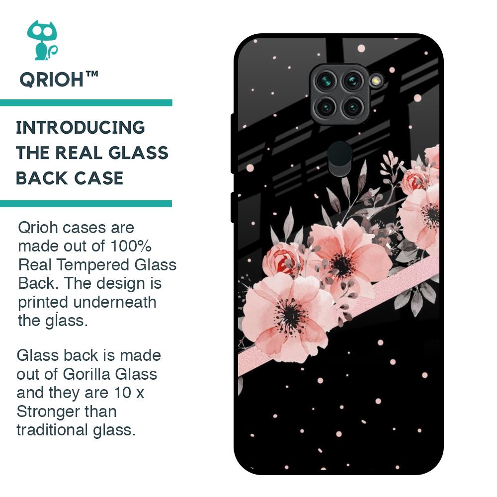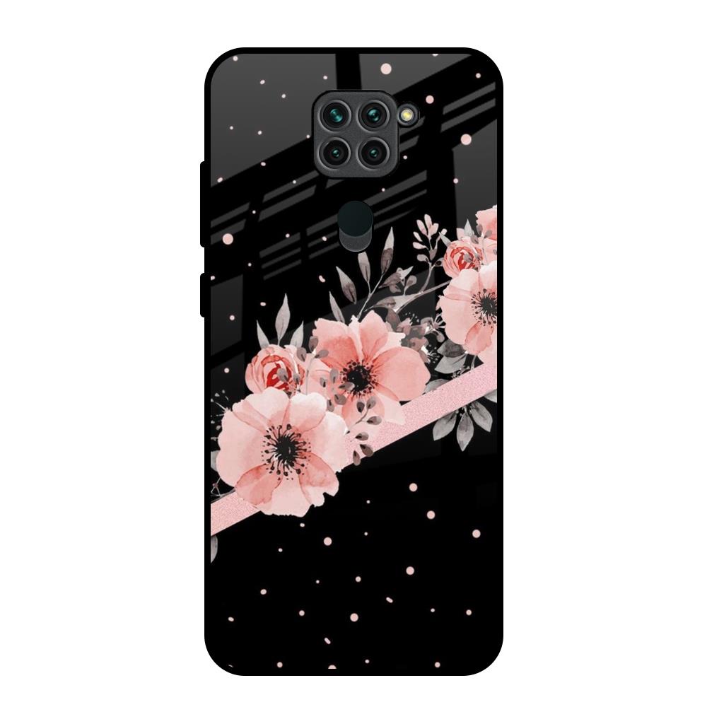 Floral Black Band Glass Case For Redmi Note 9