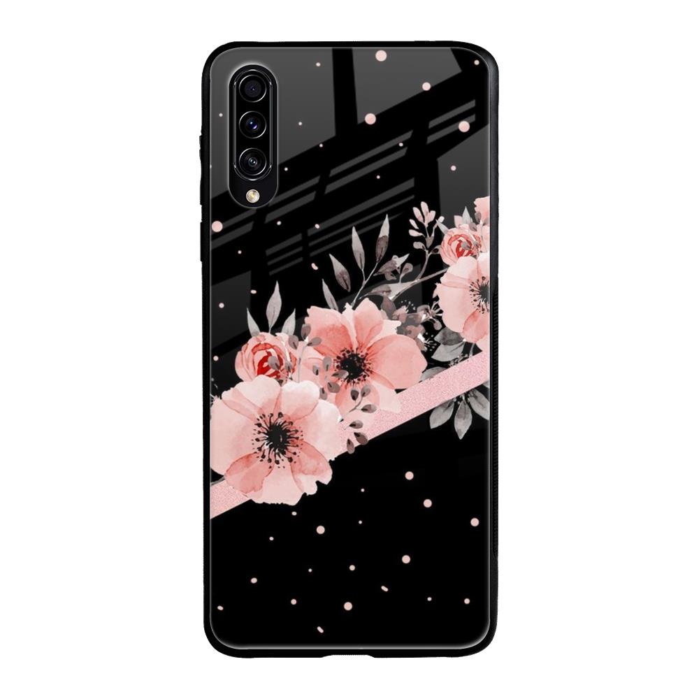 Floral Black Band Glass Case For Samsung Galaxy A70s