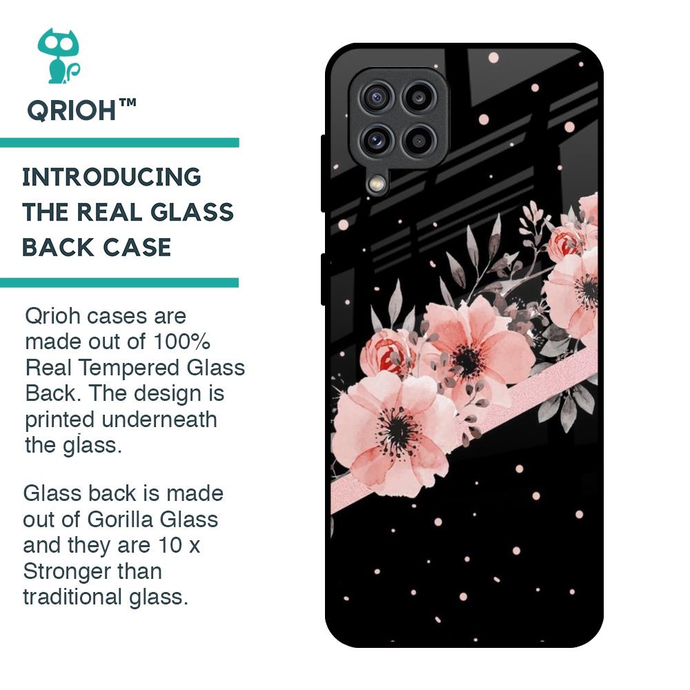 Floral Black Band Glass Case For Samsung Galaxy F22
