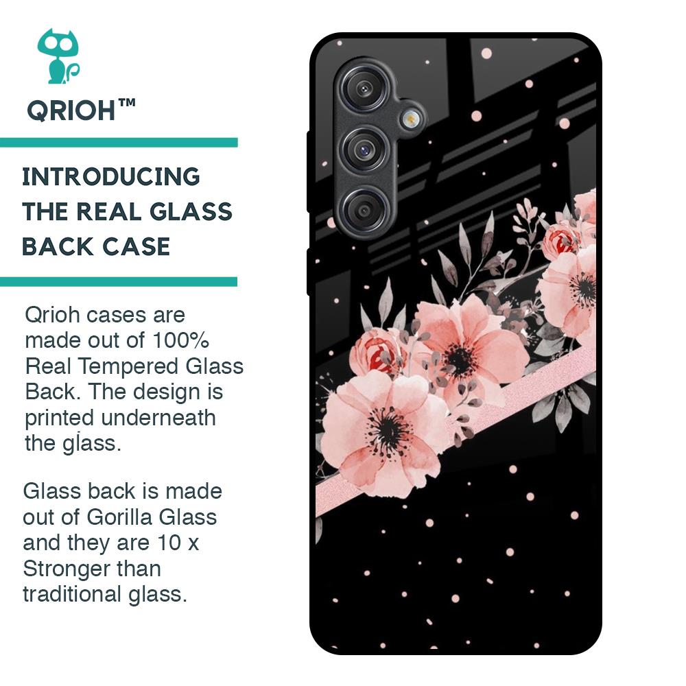 Floral Black Band Glass Case For Samsung Galaxy M55 5G