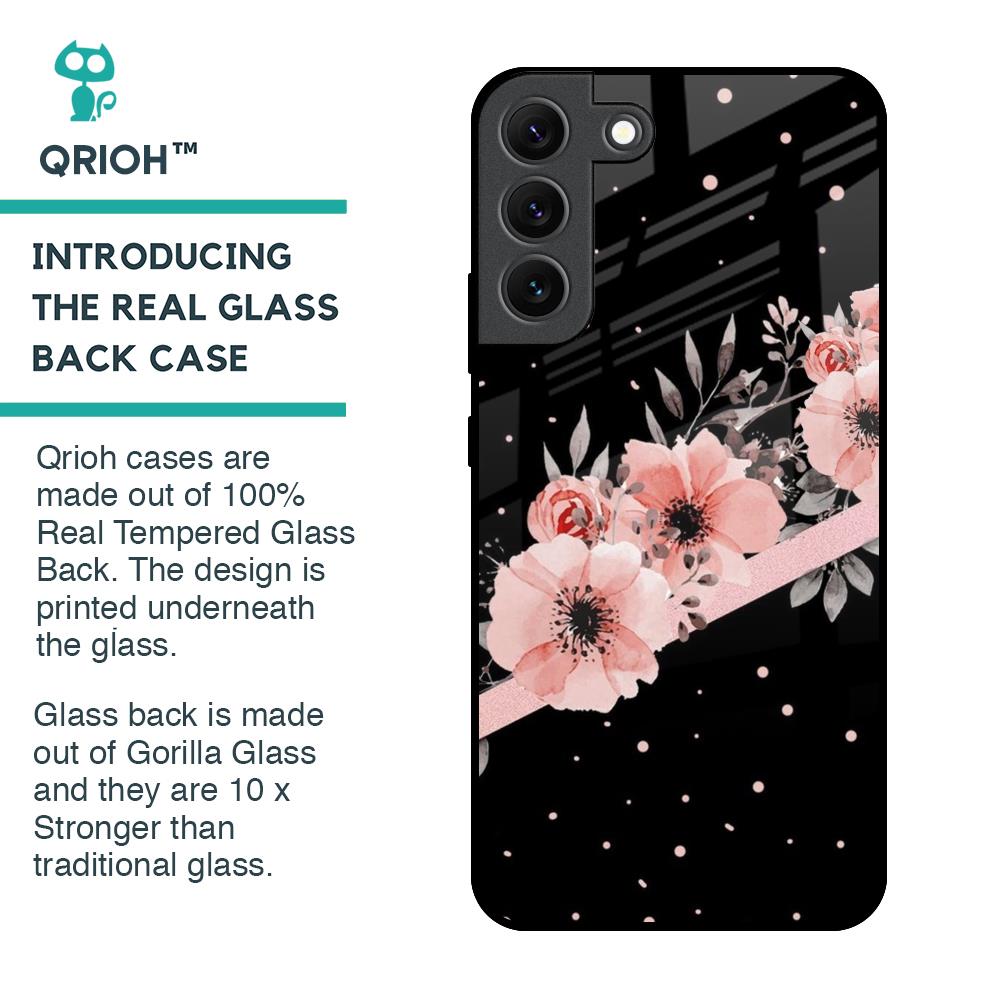 Floral Black Band Glass Case For Samsung Galaxy S22 5G