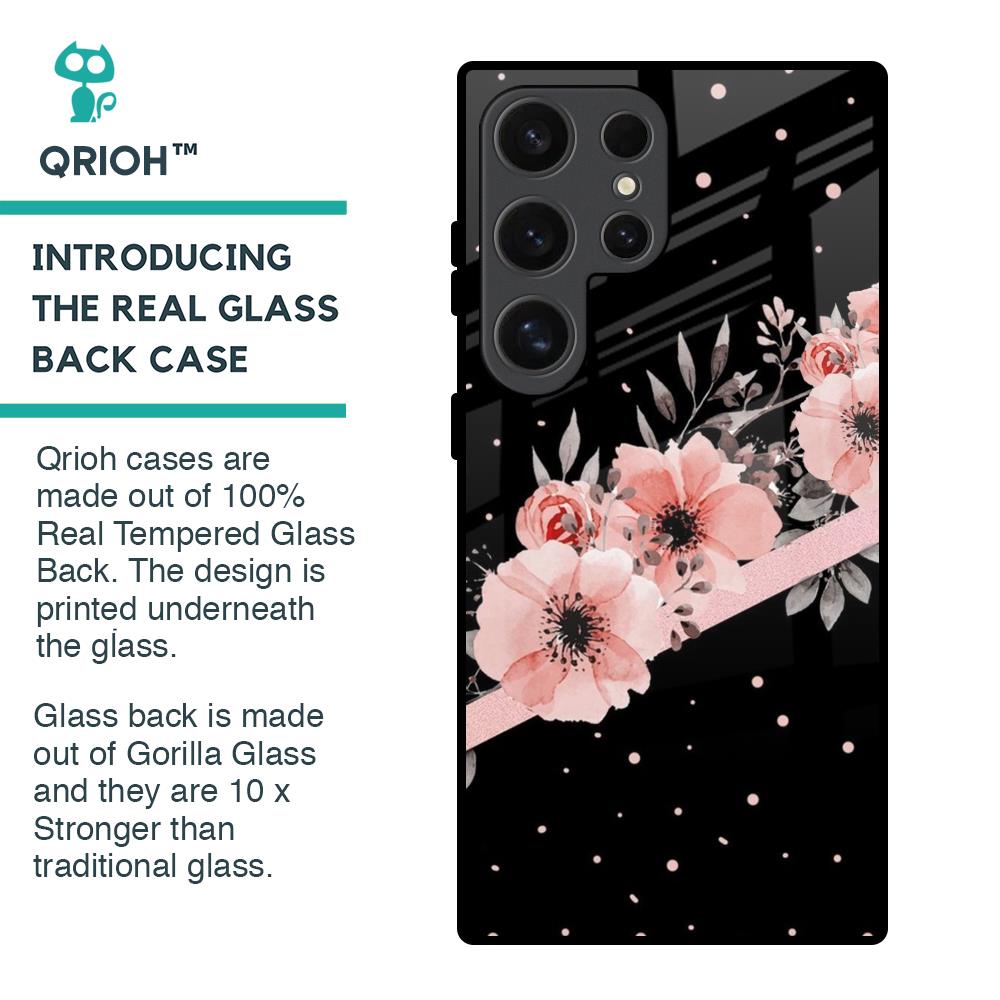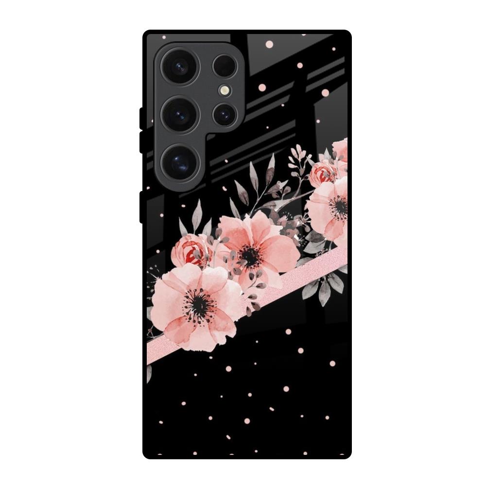 Floral Black Band Glass Case For Samsung Galaxy S24 Ultra 5G