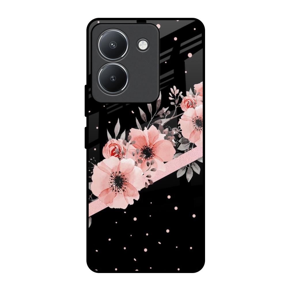 Floral Black Band Glass Case For Vivo Y36