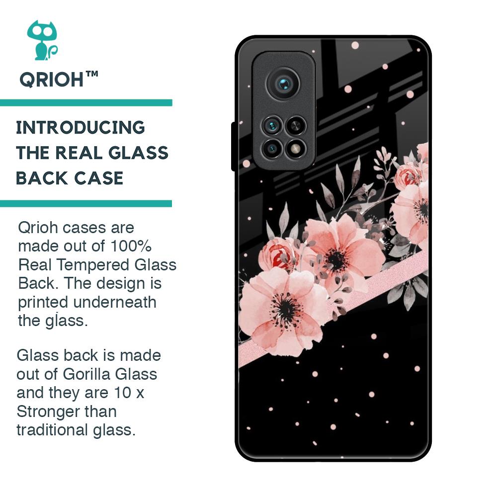 Floral Black Band Glass Case For Xiaomi Mi 10T