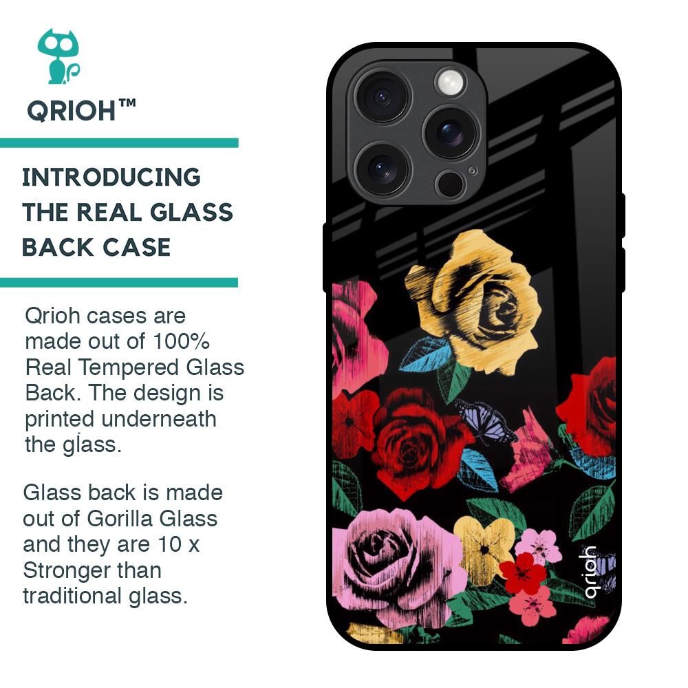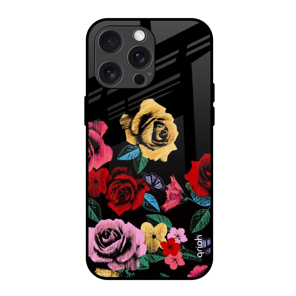 Floral Decorative Glass Case For iPhone 15 Pro Max