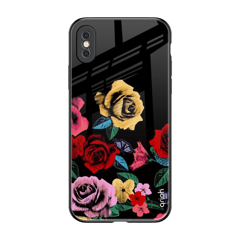 Floral Decorative Glass Case For iPhone XS Max