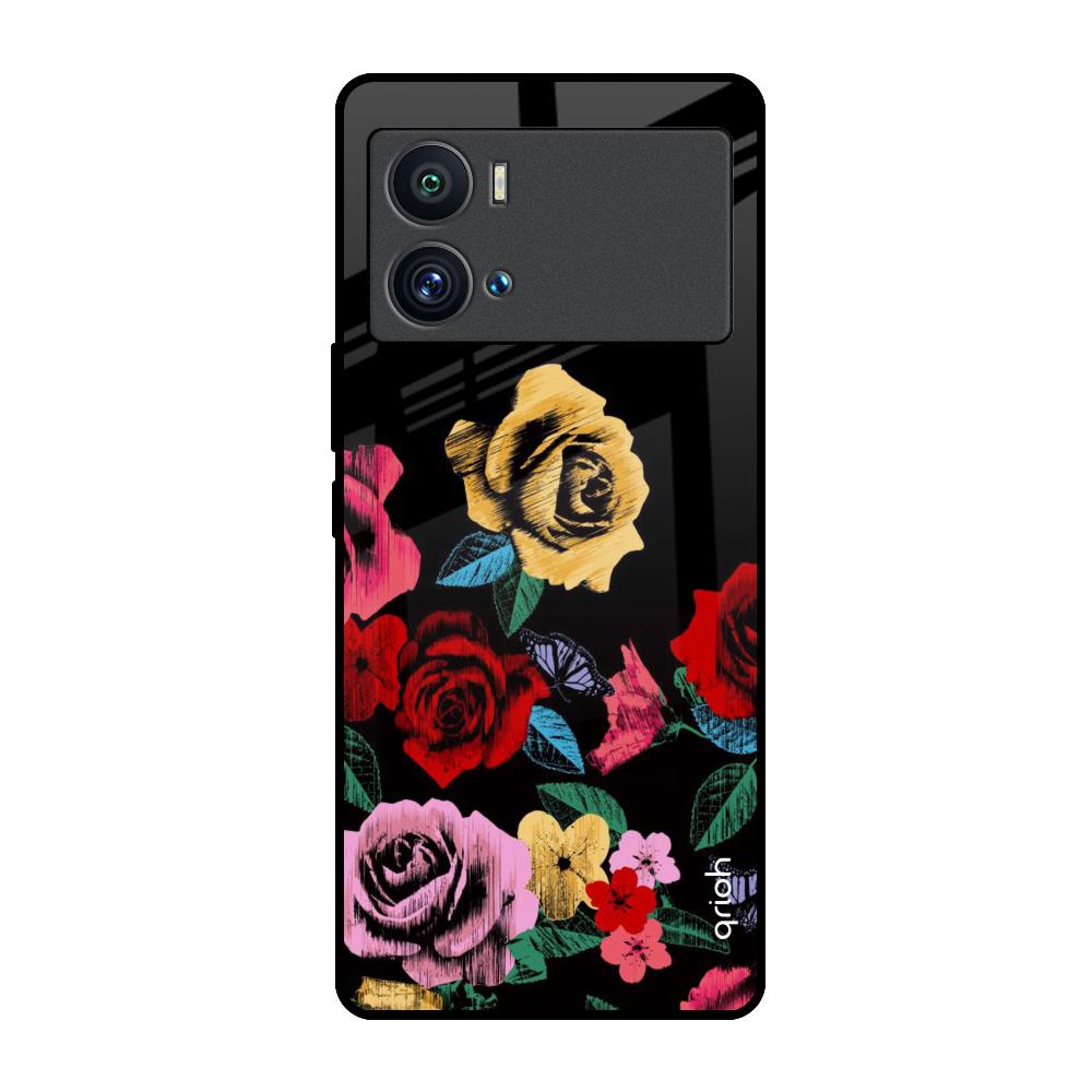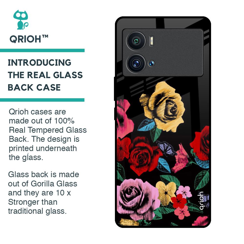Floral Decorative Glass Case For iQOO 9 Pro