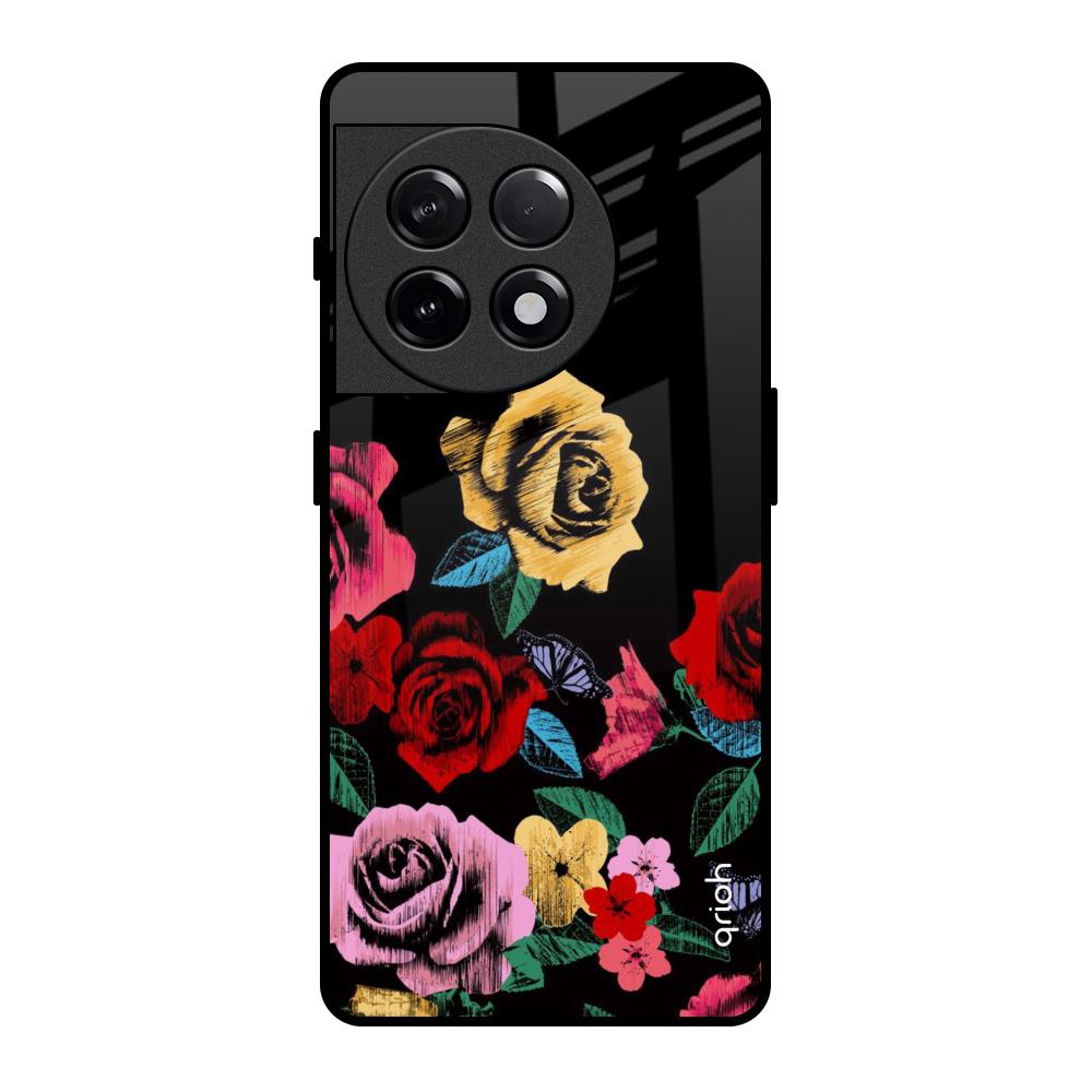 Floral Decorative Glass Case For OnePlus 11R 5G