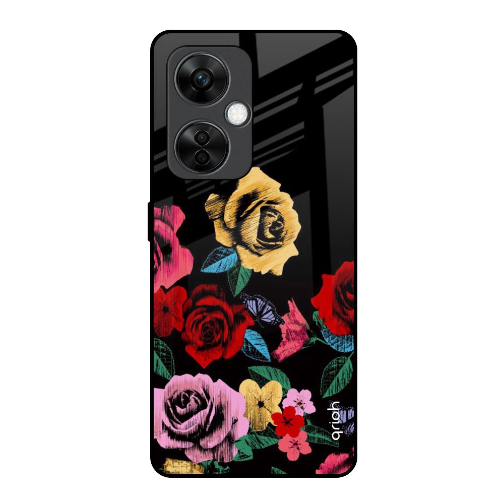 Floral Decorative Glass Case For OnePlus Nord CE 3 5G