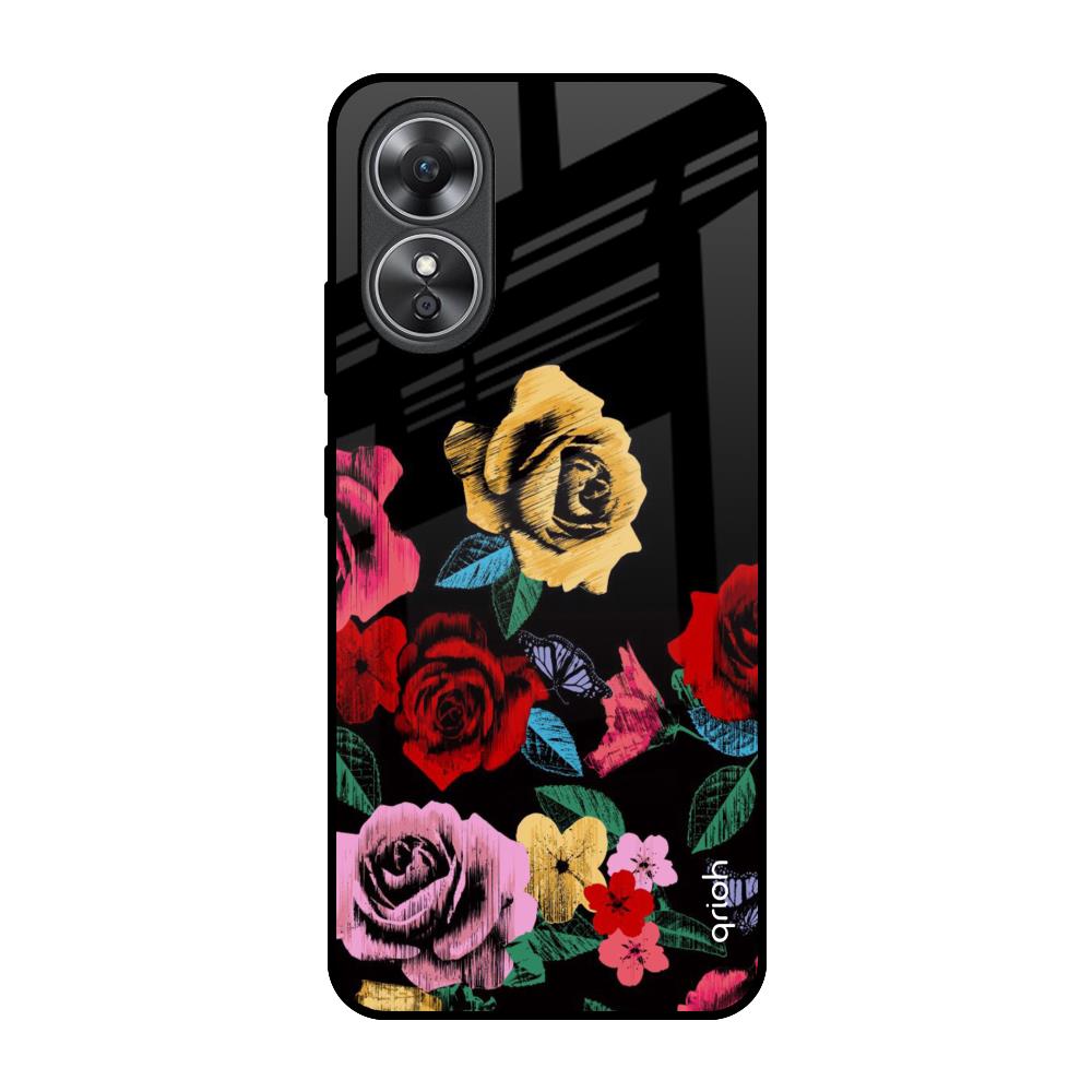 Floral Decorative Glass Case For OPPO A17
