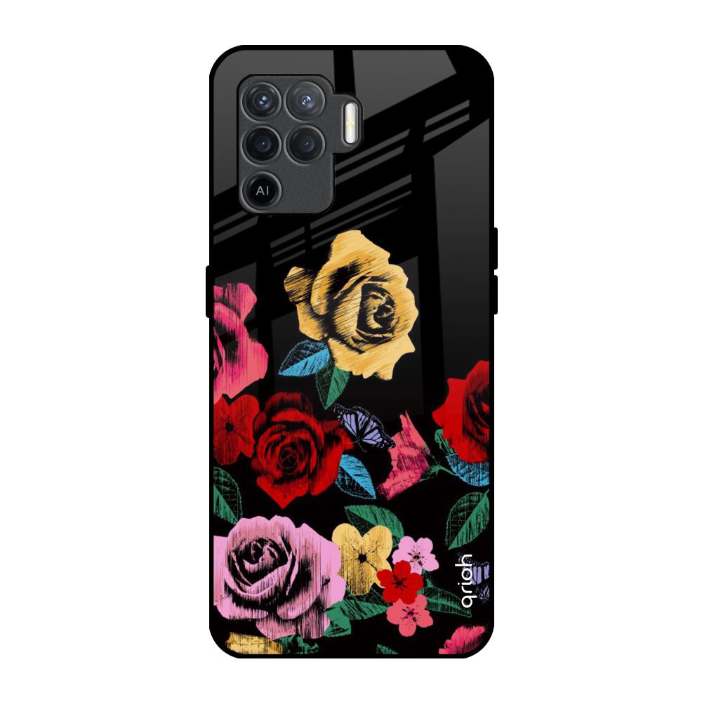 Floral Decorative Glass Case For Oppo F19 Pro