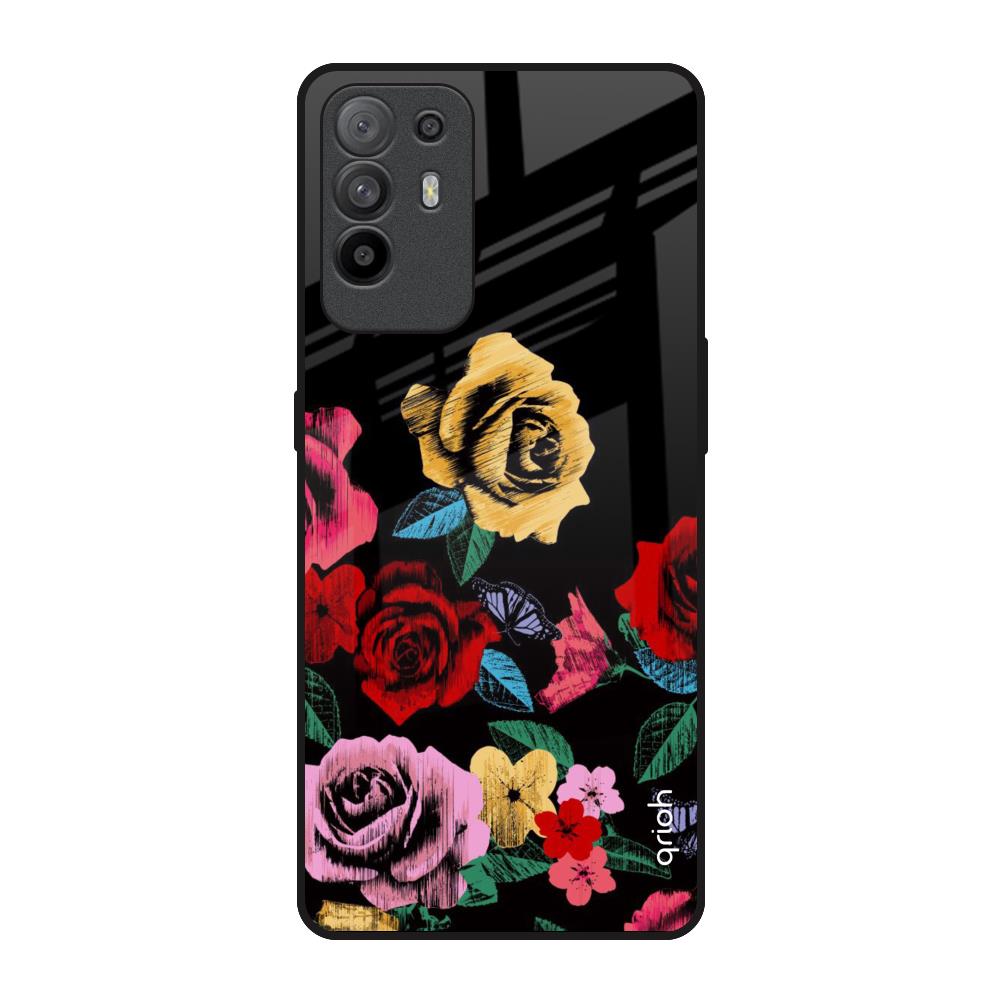 Floral Decorative Glass Case For Oppo F19 Pro Plus