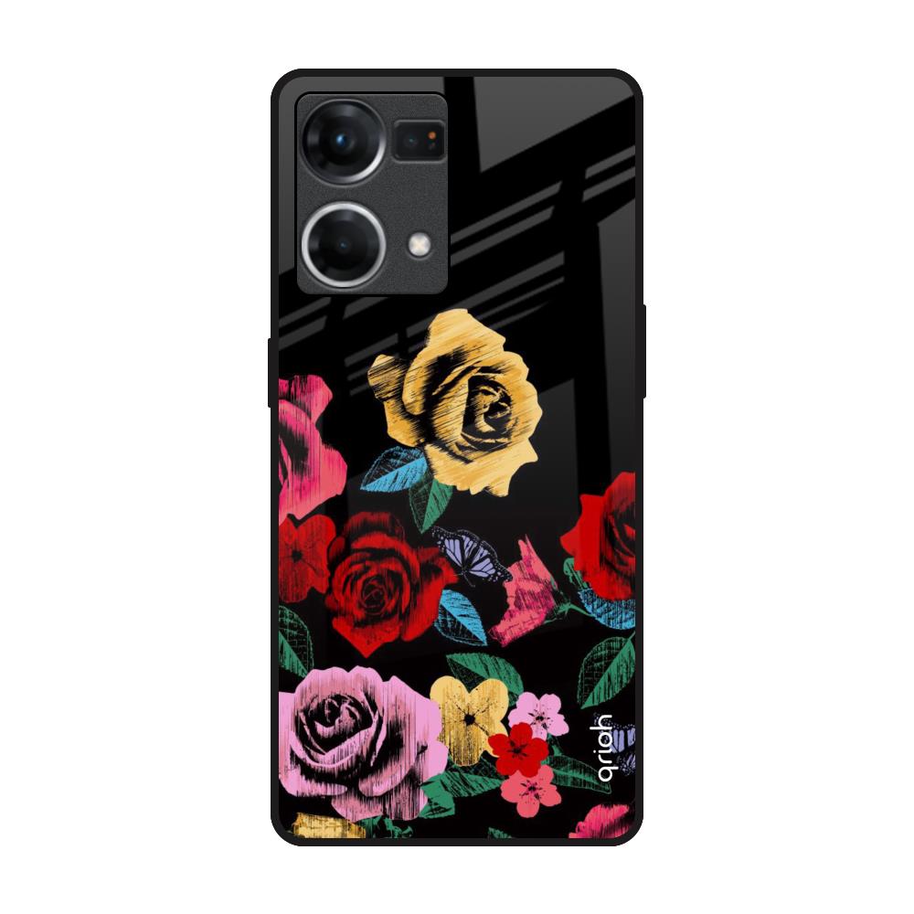 Floral Decorative Glass Case For Oppo F21s Pro