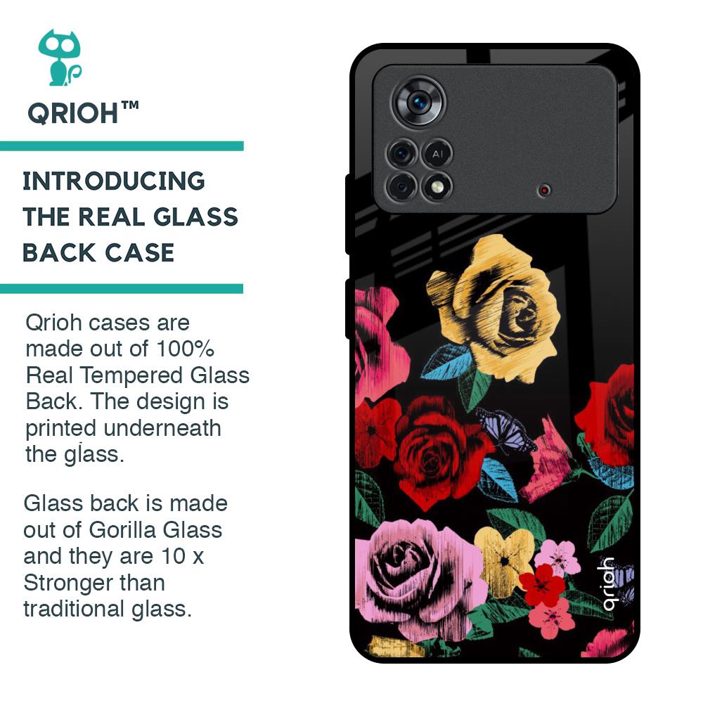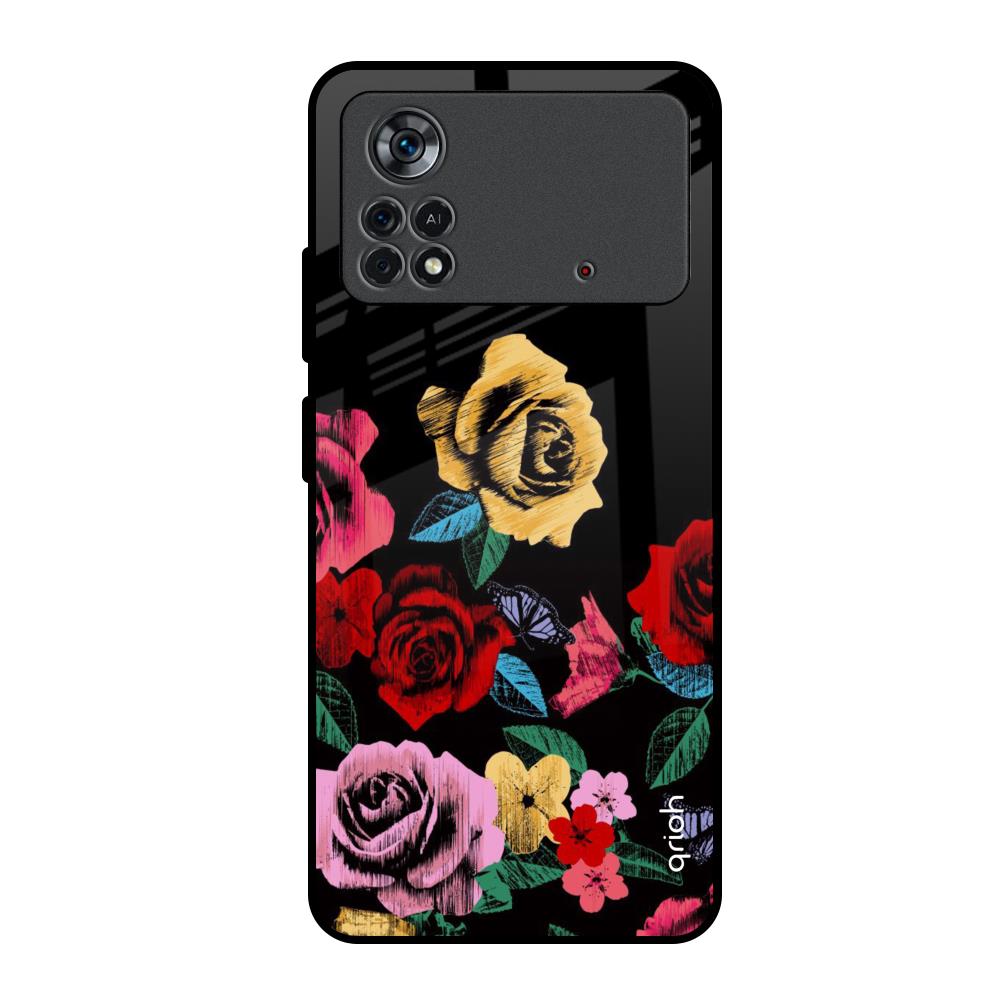 Floral Decorative Glass Case For Poco X4 Pro 5G
