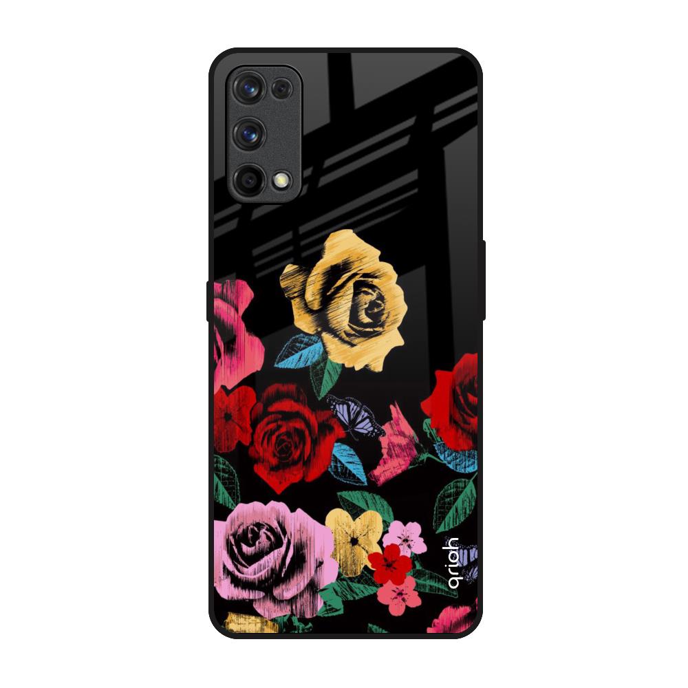 Floral Decorative Glass Case For Realme 7 Pro