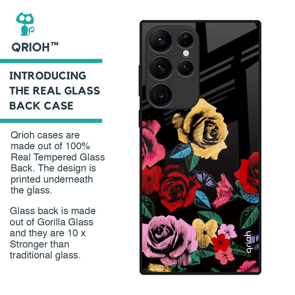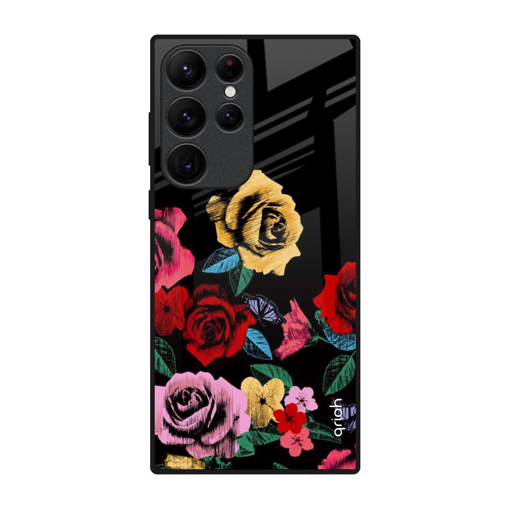 Floral Decorative Glass Case For Samsung Galaxy S22 Ultra 5G