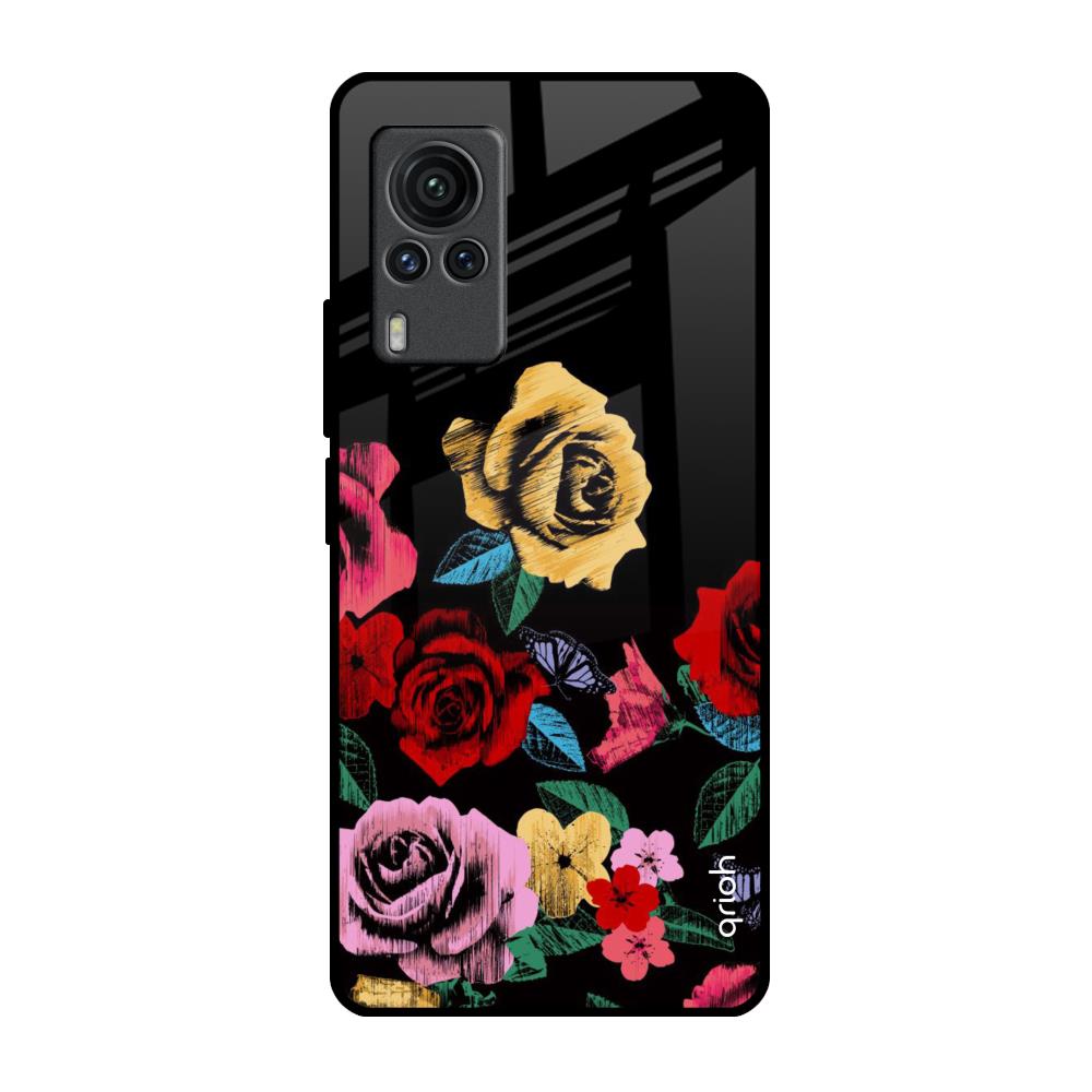 Floral Decorative Glass Case For Vivo X60 PRO