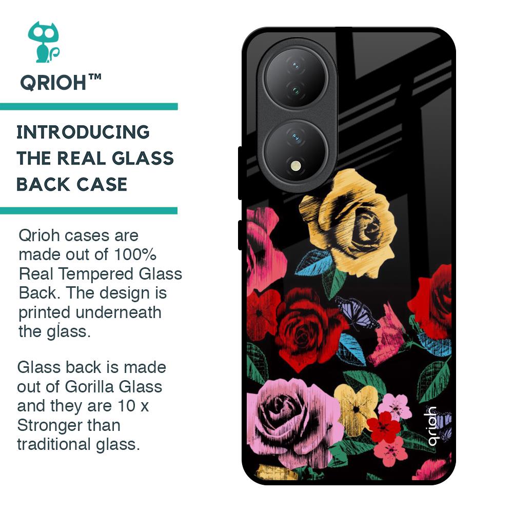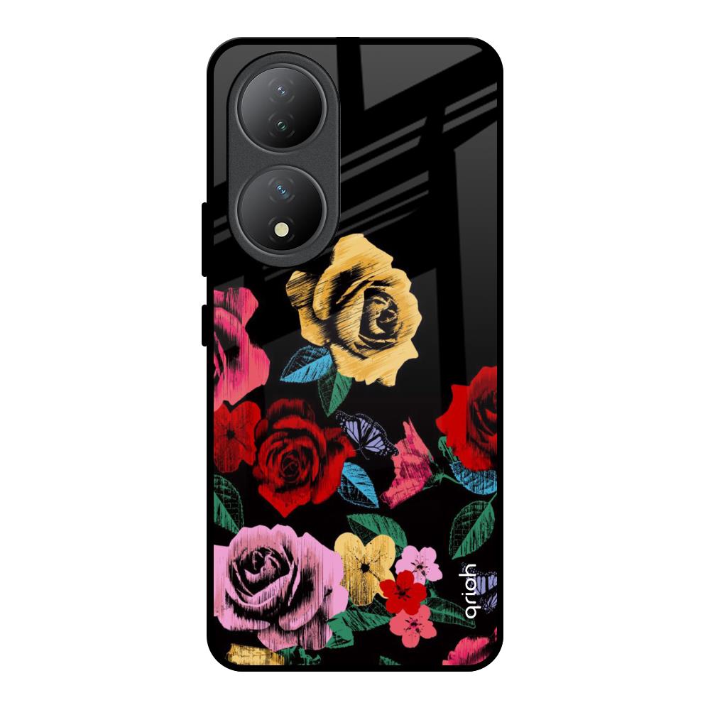 Floral Decorative Glass Case For Vivo Y100 5G