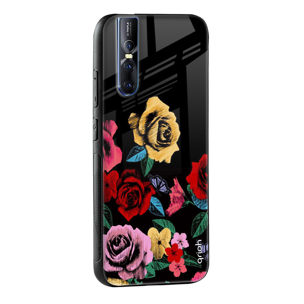 Floral Decorative Glass Case For Vivo Y22