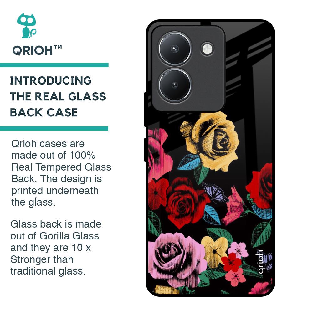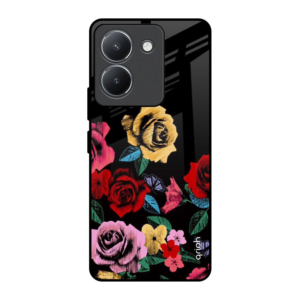 Floral Decorative Glass Case For Vivo Y36