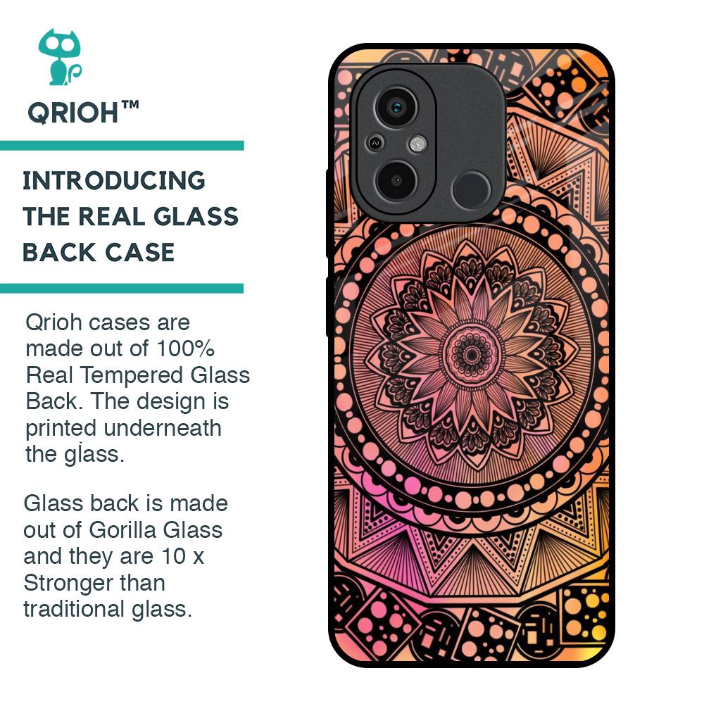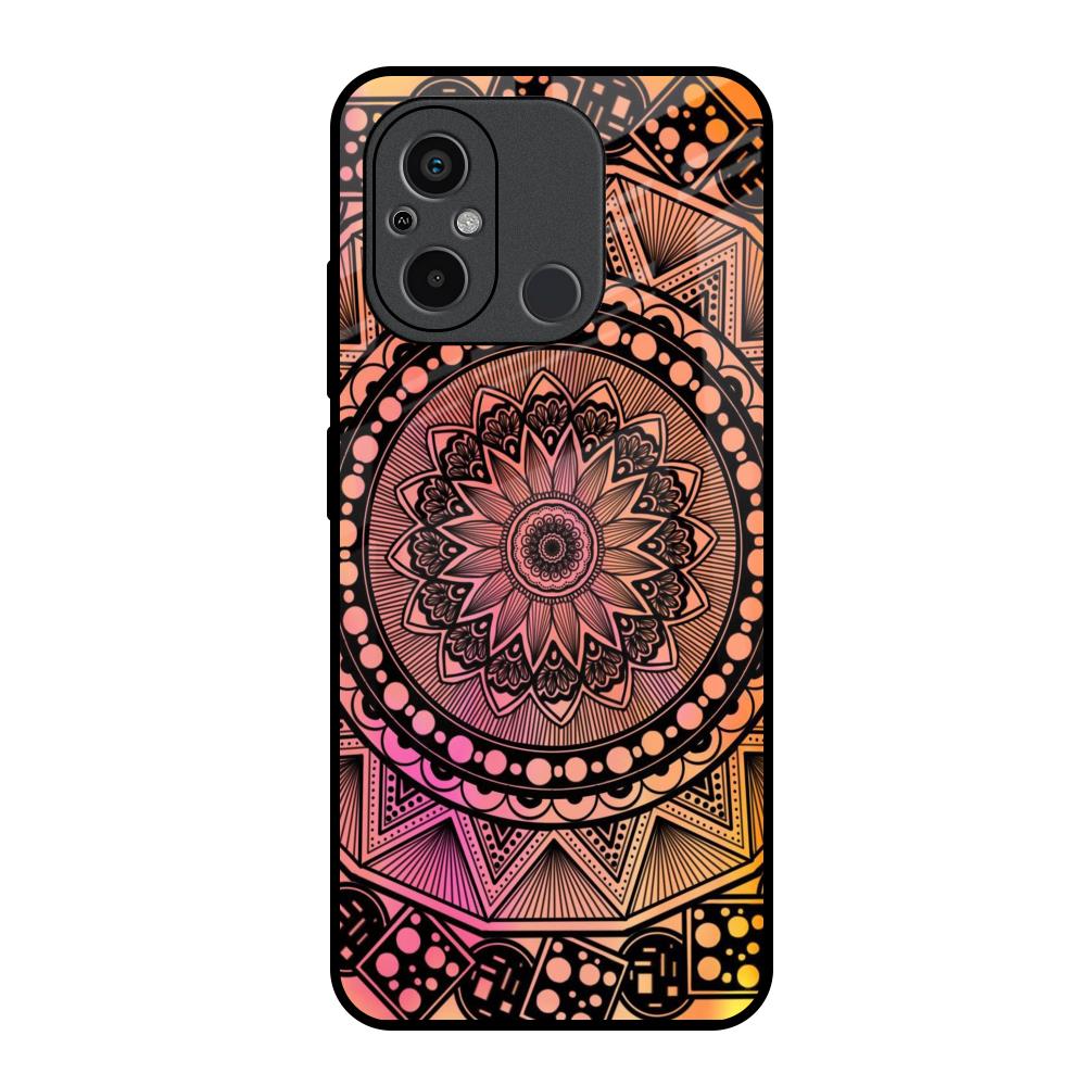 Floral Mandala Glass Case for Redmi 12C