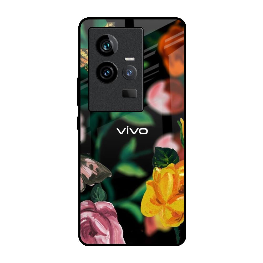 Flowers & Butterfly Glass Case for iQOO 11