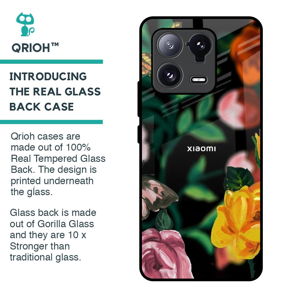 Flowers & Butterfly Glass Case for Mi 13 Pro