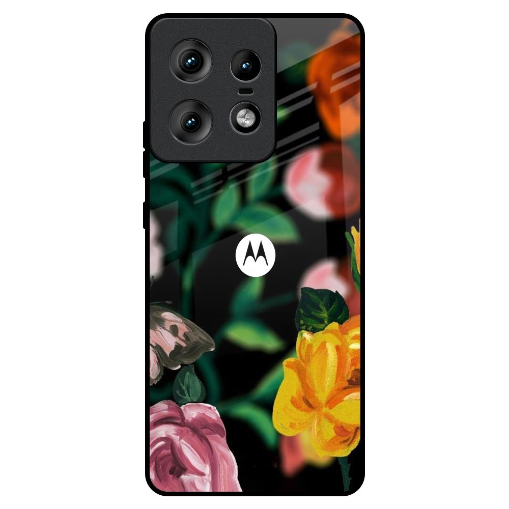 Flowers & Butterfly Glass Case for Motorola Edge 50 Pro 5G