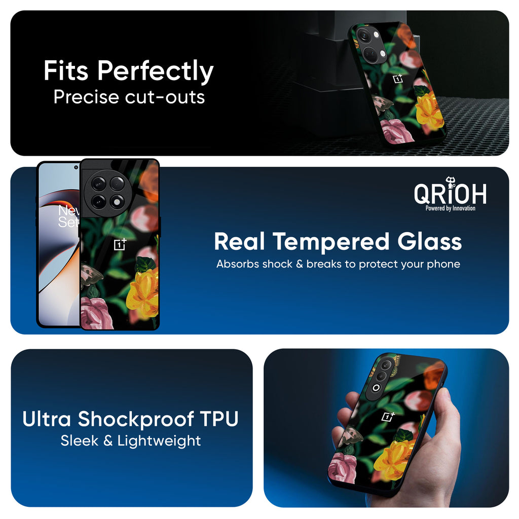 Flowers & Butterfly Glass Case for OnePlus 15R 5G