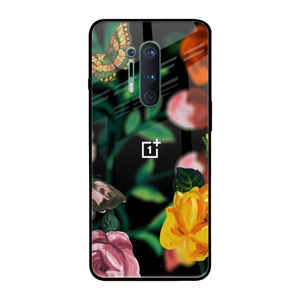 Flowers & Butterfly Glass Case for OnePlus 8 Pro