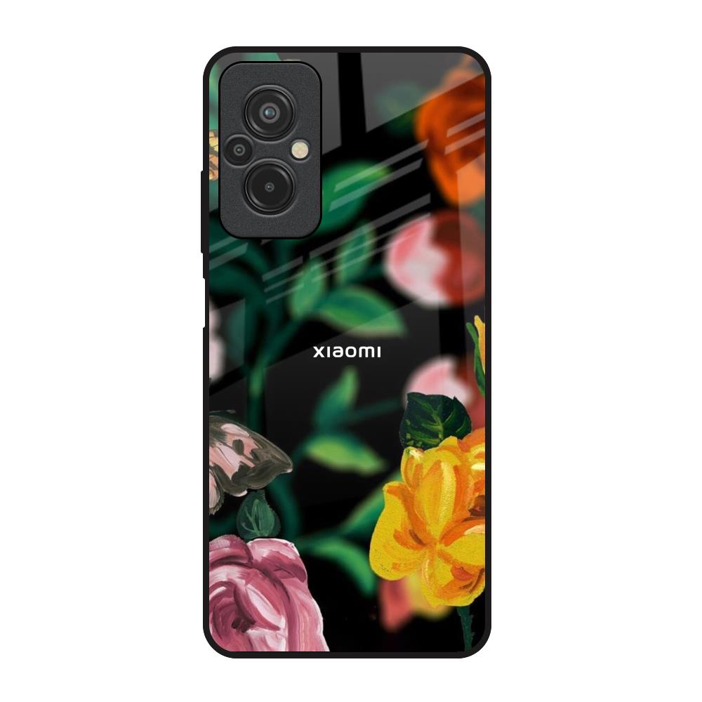 Flowers & Butterfly Glass Case for Redmi 11 Prime